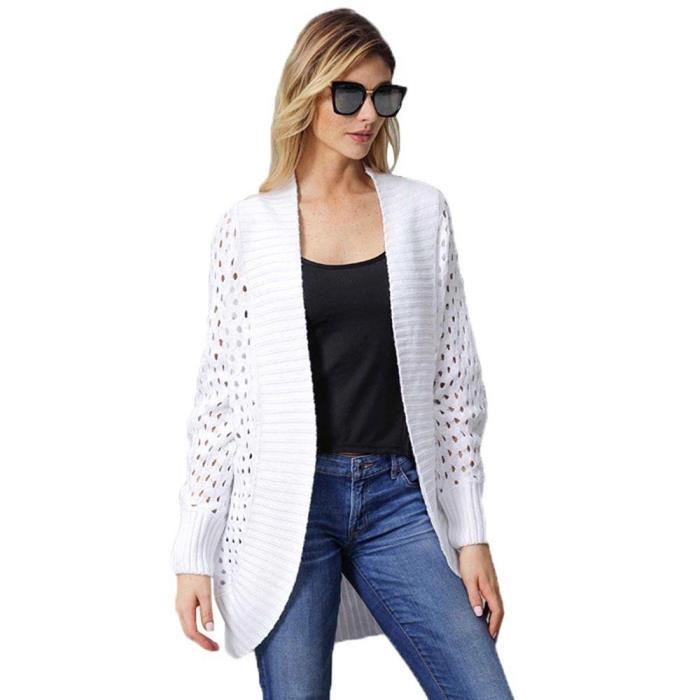 Femme Gilet Long En Maille Ajouree Ouvert Couleur Unie Cardigan Automne Manches Longues Blanc Achat Vente Gilet Cardigan Soldes Sur Cdiscount Des Le Janvier Cdiscount