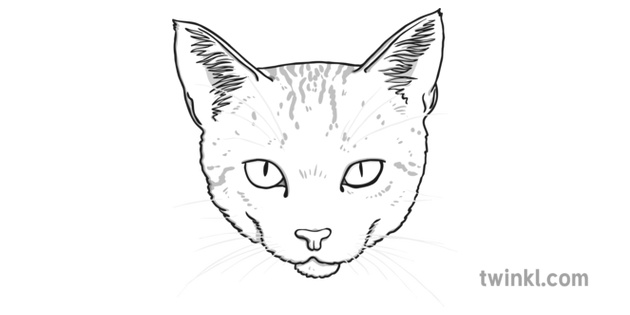Visage De Chat Noir Et Blanc Illustration Twinkl