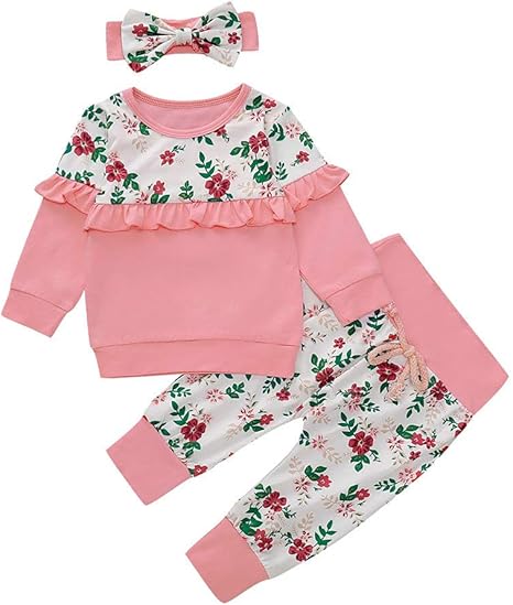Manadlian Ensemble Bebe Fille Vetements Bebe Fille Naissance Automne Pyjama Manche Longue Haut Fille Pas Cher Combinaison Imprime Combi Barboteuse Leggings Bandeaux Amazon Fr Vetements Et Accessoires