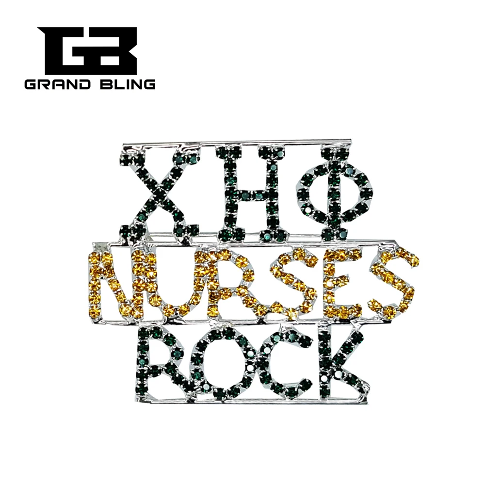 Pierres Vertes Et Dorees Lettres Grecques Broche Chi Eta Phi Infirmieres Rock Broche Bijoux Aliexpress