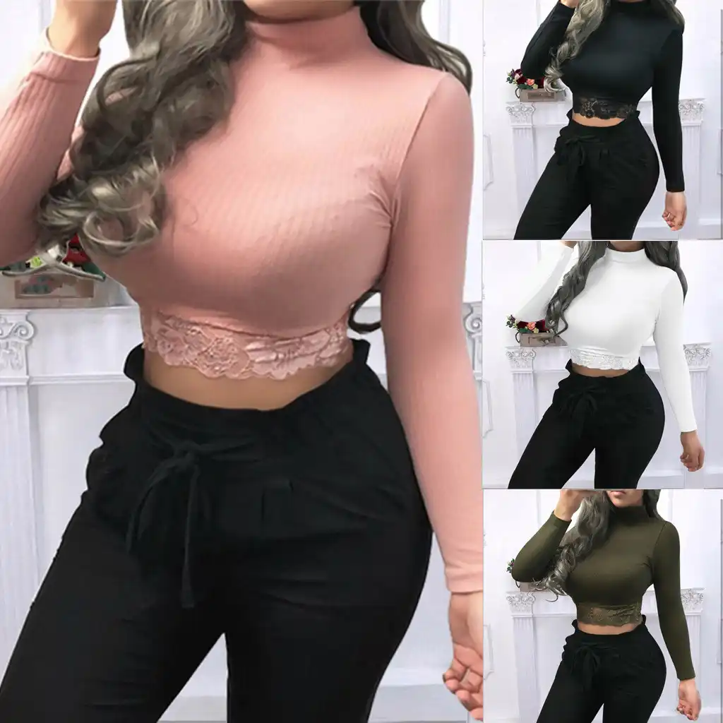 Tshirt Women Fashion Pure Lace Received Long Sleeve T Shirt Bottom Poleras Camiseta Mujer Harajuku Top Women T Shirt Haut Femme T Shirts Aliexpress