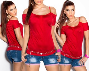 Top Haut T Shirt Ete Femme Epaules Nues Rouge Manches Courtes T 34 36 38 Ebay
