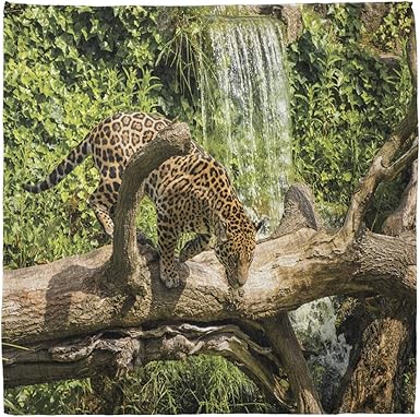 Amazon Com Lunarable Bandana Scarf Safari Jaguar Cat On Tree Trunk Green Pale Brown Clothing