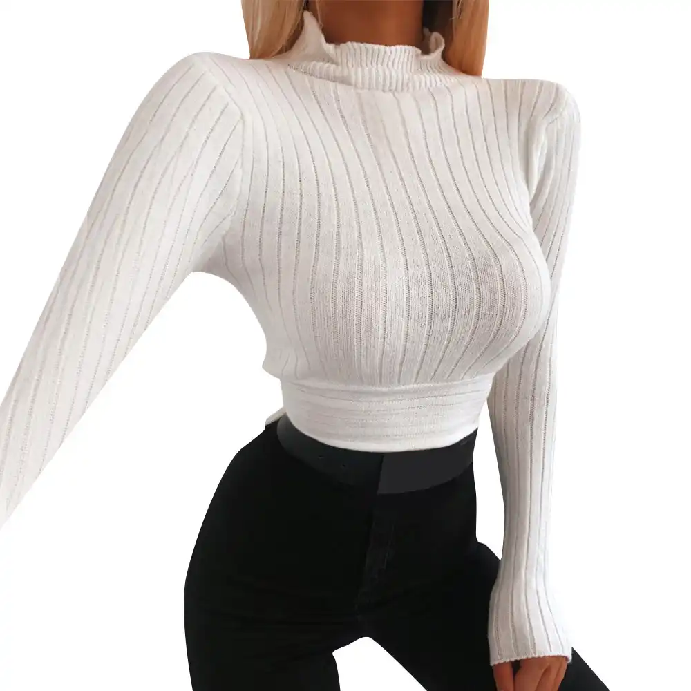 Maison Nid Gymnastique Gros Seins Col Roule Culture Chandails Lacage Tricote Pull 19 A Manches Longues Tricots Hauts Femmes Slim Fit Pulls Aliexpress