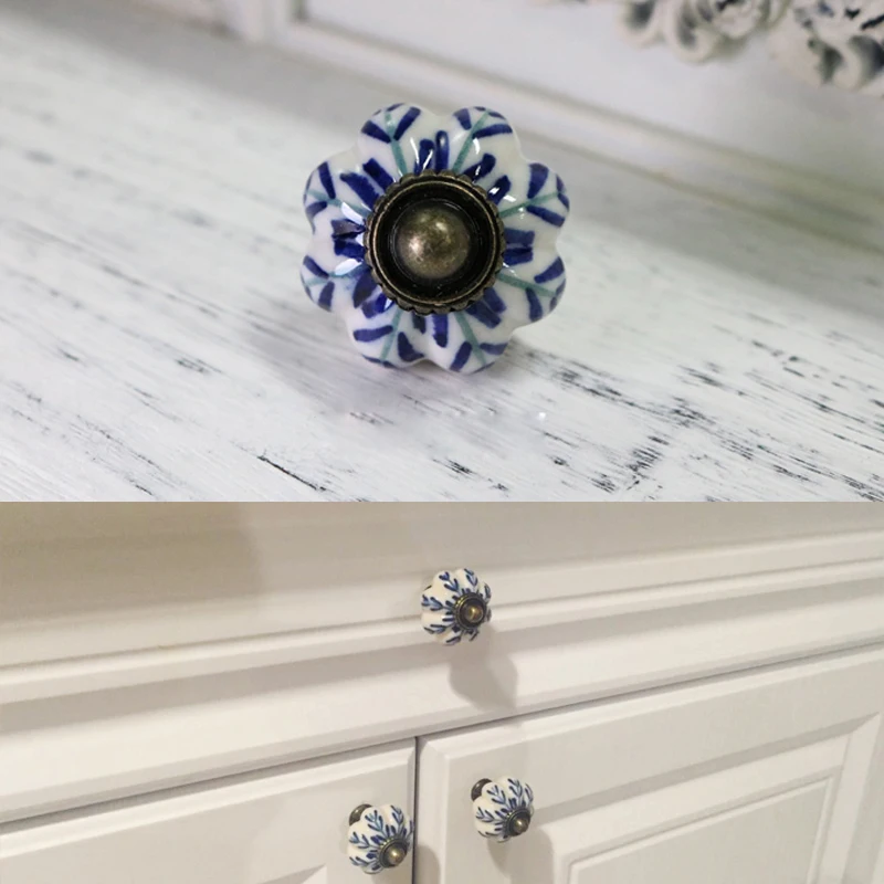 Poignee De Meuble Vintage En Porcelaine 8x Bleu Et Blanc Boutons Et Poignees En Ceramique Pour Poignee De Porte Placard Tiroir De Cuisine Aliexpress