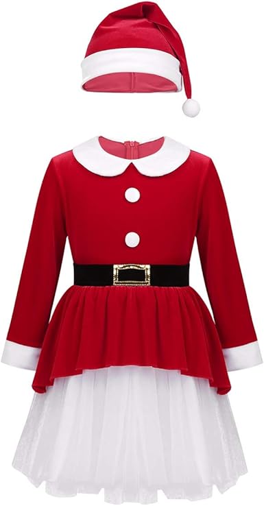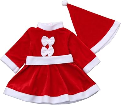 Tiaobug Robe Noel Enfant Fille Deguisement De Elfe Noel Costume De Mere Noel Rouge Robe A Manche Longue Robe Santa Soiree Princesse Et Chapeau Pere Noel Robe De Fete 2 12 Ans Amazon Fr