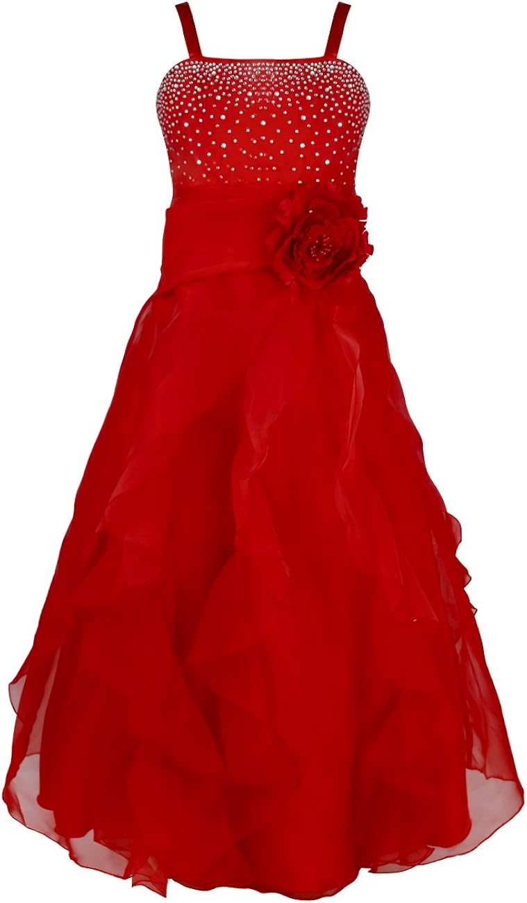 Tiaobug Enfant Fille Robe Princesse Mariage Demoiselle Dhonneur Robe Soiree Ceremonie Longue Organza Robe Ceinture A Fleur Bretelle Robe A Strass Robe Noel Carnaval 2 14 Ans Robes Fille