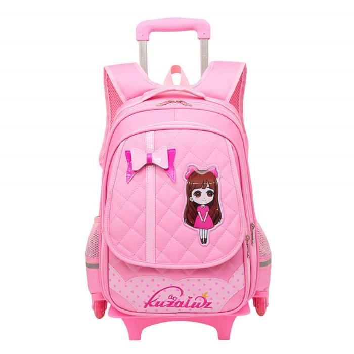 Rose Zevonda Bagage Cartable Scolaire A Roulettes Sac Decole Sac A Dos Trolley A Roulettes Nylon Impermeable Detachable Pour Fille Bagages Bagages Enfant
