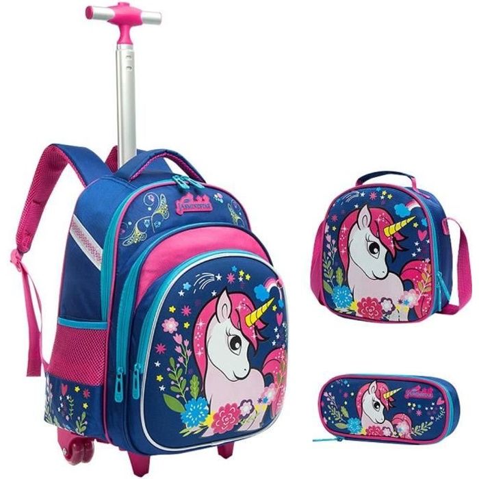 Sac Licorne Trolley Ensemble Filles Sac D Ecole Primaire Cartable A Roulettes Avec Sac A Lunch Etui A Crayons Ideal Pour 1 6 Achat Vente Sac A Dos Soldes Sur