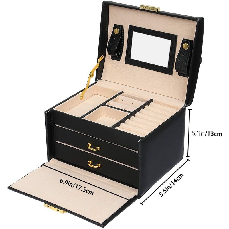 Boite A Bijoux Coffret Pour Bijoux Beauty Case A 3 Couches Simili Cuir Avec 2 Tiroirs Miroir Et Serrure Noir Meerveil Ma Jj071 Black