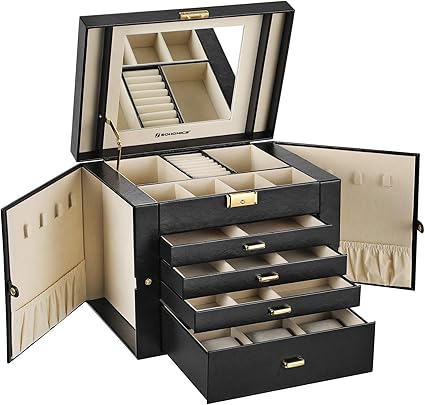Gifort Boite A Bijoux Grand Coffret A Bijoux En Cuir Etui De Organisateur Pour Bijoux Double Porte Avec 5 Tiroirs Pour Cosmetique Colliers Montres Cadeau Pour Filles Femmes Amazon Fr Bijoux