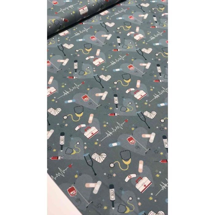 Tissu Coton Imprime Bio Certifie Gots Medical Seringues Et Pansements Fond Bleu Gris Vendu Au 0 5 M Achat Vente Accessoire Seche Timbre Tissu Coton Imprime Bio Cdiscount
