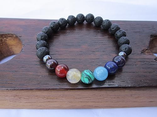 The 7 Chakras Root Chakra For staying grounded and centered Sacral Chakra For creativity and passion Solar Plexus Chakra For power and identity Heart Chakra For love and compassion Throat Chakra For communication and confidence Third Eye Chakra For intuition and meditation. Experience a mix of mental calmness, tranquility, and clearness as soon as you put the 7 Chakra Bead Bracelet on Each stone represents the seven chakras that focus on developing your life force The healing crystal beads and lava stone in this bracelet absorb the negative energy blocking your chakras, resulting in a balanced flow of energy.