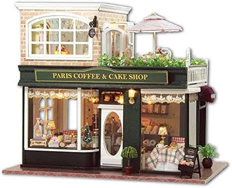 Cuteroom Maison De Poupees En Bois Bricolage Handcraft Miniature Kit Paris Cafe Et Gateau Shop Model Avec Tous Les Meubles L Enseignement En Anglais Amazon Fr Jeux Et Jouets