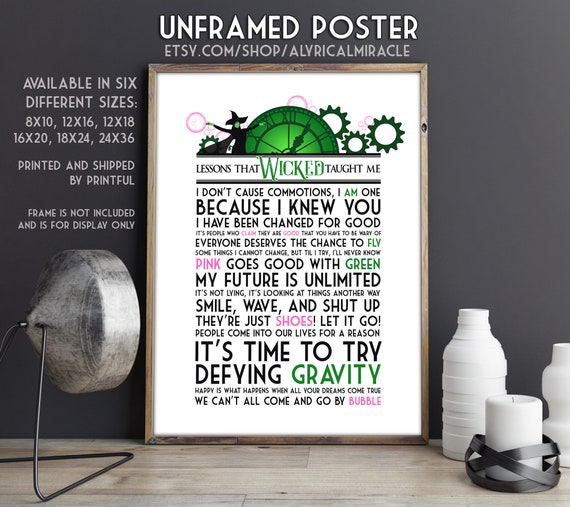 Lyrics Quotes Poster Wicked Broadway Musical Poster Wall Art No Frame Art Posters Art