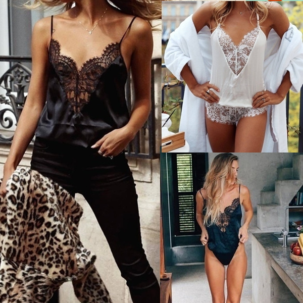 Deep V Neck Bodysuit Women Solid Mesh Lace Lingerie Nightwear Body Femme Leotard Summer Female Rompers Outlets Wish
