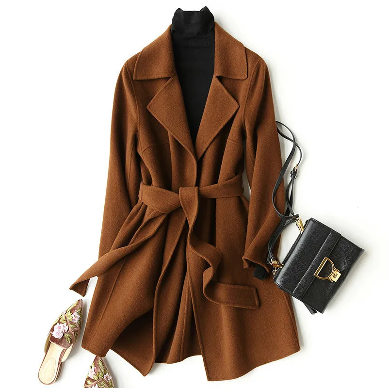 Female Cashmere Jacket With Belt Dark Brown Jackets For Women Loose Mid Long Coats Cotton Winter Trench Coat Women S Outerwear Cashmere Jacket Winter Trench Coat Womenwinter Trench Coat Aliexpress