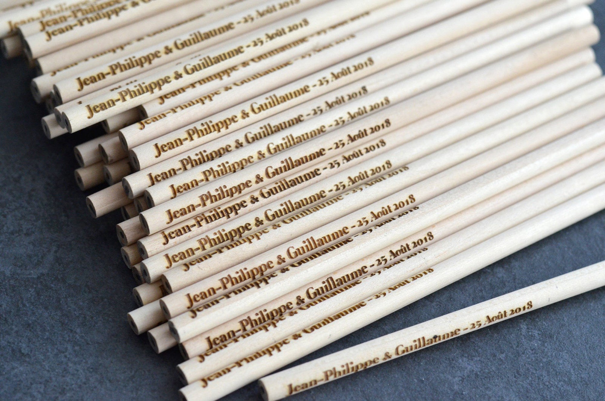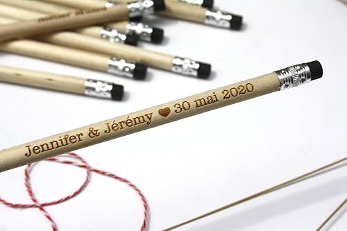 Lot De 75 Crayons Personnalises Bois Grave Cadeau Pour Invites De Mariage Ou Anniversaire Gomme Blanche Atelier Mumu