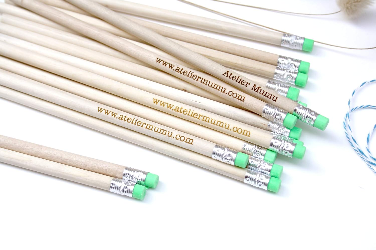 X 1 Crayon A Papier Personnalise En Bois Cadeau Ou Echantillon Gomme Verte Atelier Mumu