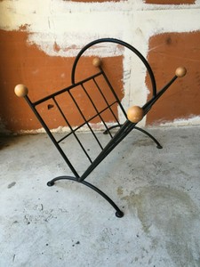 Porte Revue Fer Forge Design Neo Retro Porte Livres Deco Design Noir Boule Bois Ebay