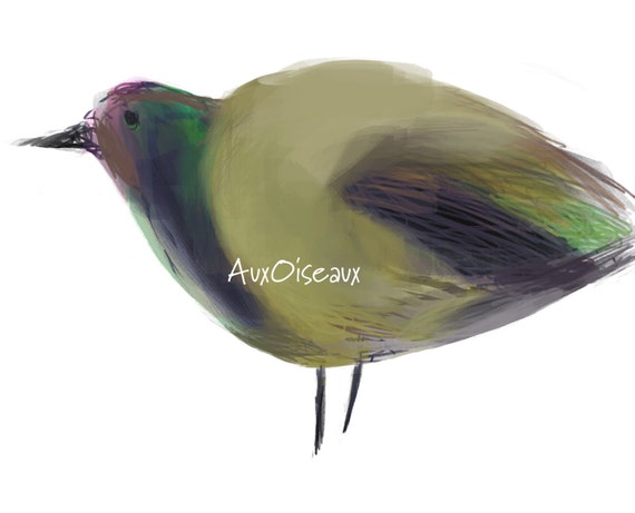 Oiseau Mauve Vert Jaune Kaki Crayon Peinture Dessin Etsy