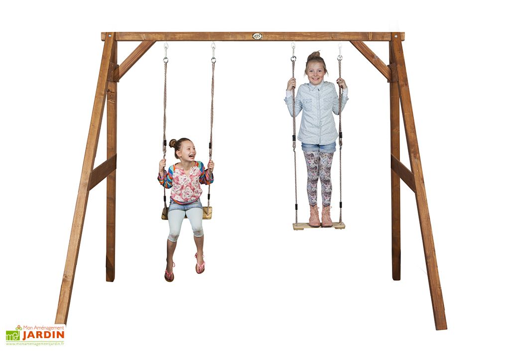 Balancoire bois enfant. Portique bois 4 enfants 2 balançoires échelle de corde corde à nœuds Tous les jeux sont permis Portique bois 4 enfants 2,3 m Trigano ALTI 162 Avis 139,00 € En stock Date de livraison estimée 29/01/21. Balançoire en bois de cèdre sur roue, sur roulement à billes et suspendue, de finition impécable à la couleur de votre choix, alliant confort et durabilité. Ce portique bois se fondera dans votre jardin et les éclats de rire retentiront !.
