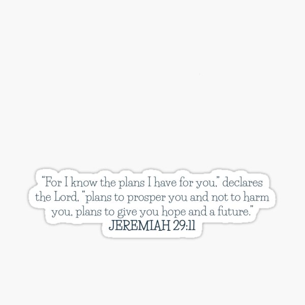 Jeremiah 2911 Context 8 For thus saith the LORD of hosts, the God of Israel;. 2 (After that a Jeconiah the king, and the queen, and the b eunuchs, the c princes of Judah and Jerusalem. Newclew for I Know The Plans I Have for You, declares The Lord, Plans to Prosper not to harm You, Plans to give You Hope and a Future Jeremiah 2911 Wall Art Sticker Décor Decal ((M) 22''x12'').