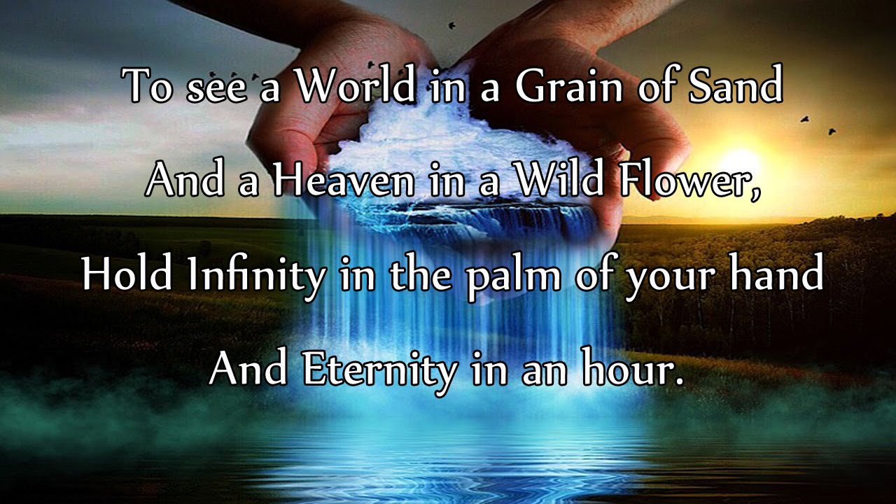 To see a world in a grain of sand And a heaven in a wild flower, Hold infinity in the palm of your hand, and eternity in an hour Yeah, that would be nice.