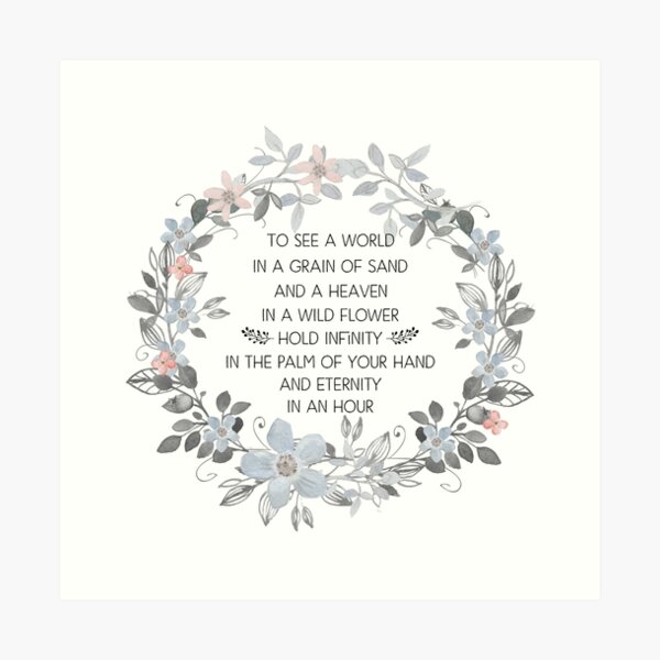 Inspirational Quote To See A World In A Grain Of Sand And A Heaven In A Wild Flower Hold Infinity In The Palm Of Your Hand Art Print By In3pired Redbubble