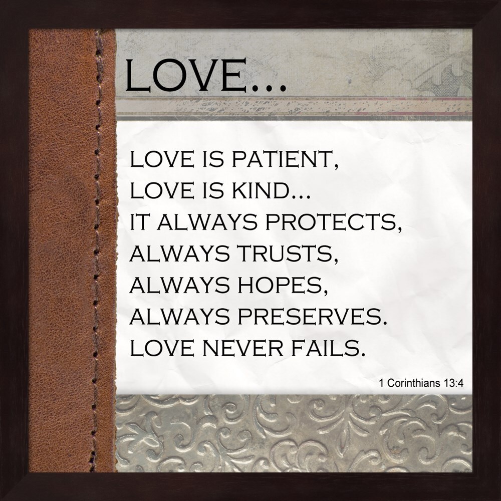 Love Is Patient Love Is Kind Sign Love Never Fails Framed Sign Aftcra