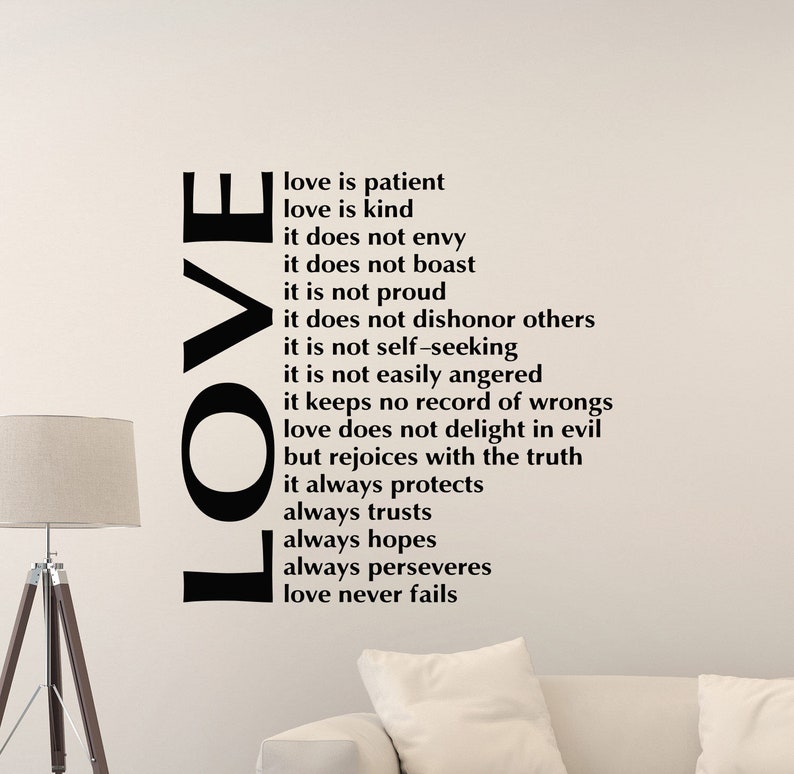 Love Is Patient Love Is Kind Wall Art Decor Vinyl Decal Sayings Religious Bib Wall Decal