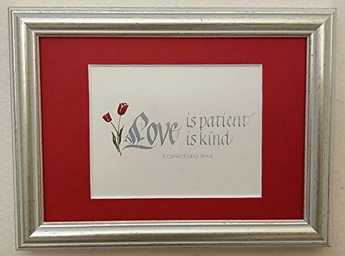Amazon Com Love Is Patient Love Is Kind 1 Corinthians 13 4 A Hand Lettered Christian Calligraphy Bible Scripture Christian Wall Art Landscape Print Matted 6 X 8 Silver Frame 1233lim48sm03 Handmade