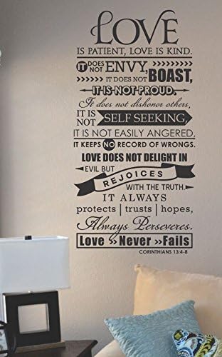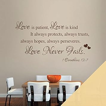 Amazon Com Love Is Patient Love Is Kind Love Never Fails Corinthians Bible Wall Quote Wall Art Sticker Cream Furniture Decor