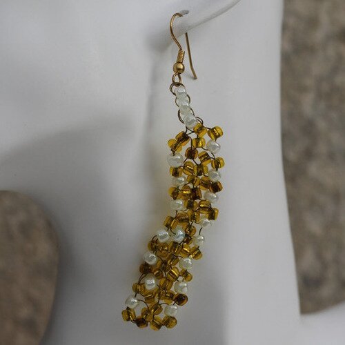 Boucles D Oreilles Tissees En Perles De Rocaille Or Et Nacrees Modele Noel Un Grand Marche