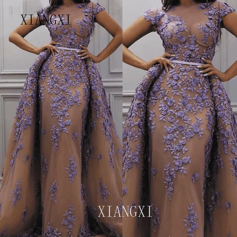 Robe Longue A Manches Courtes Violette Jupe Detachable Dentelle Appliquee Luxe Aliexpress