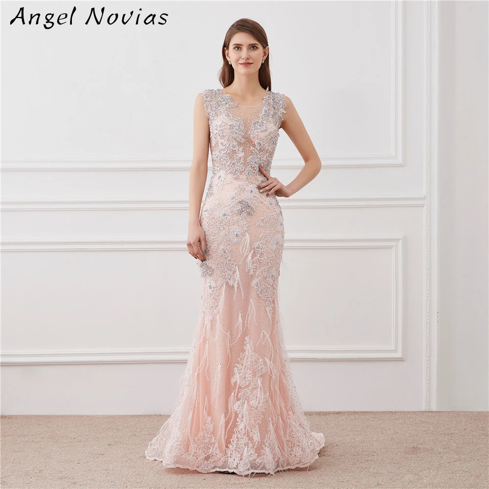 Robe De Soiree De Luxe Longue Sirene En Cristal Brillant 18 Avec Plume Ange Novias Aliexpress