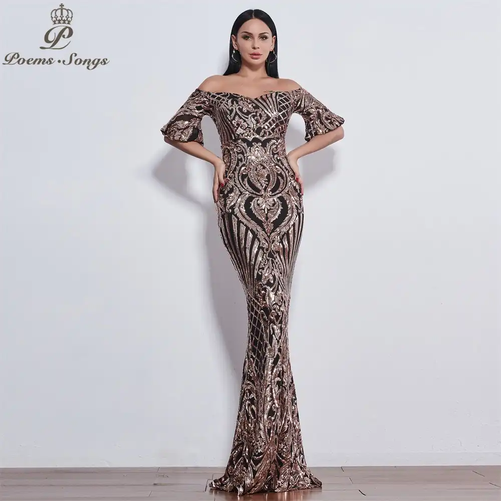 Poems Songs Robe Longue De Soiree Robbie Elegante De Luxe En Paillettes Robes De Fetes Aliexpress