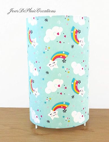 Lampe Tube Turquoise Motifs Etoiles Filantes Et Nuages Lampe Chevet Lampe D Appoint Idee Cadeau Naissance Bapteme Anniversaire Trousseau Bebe Amazon Fr Handmade