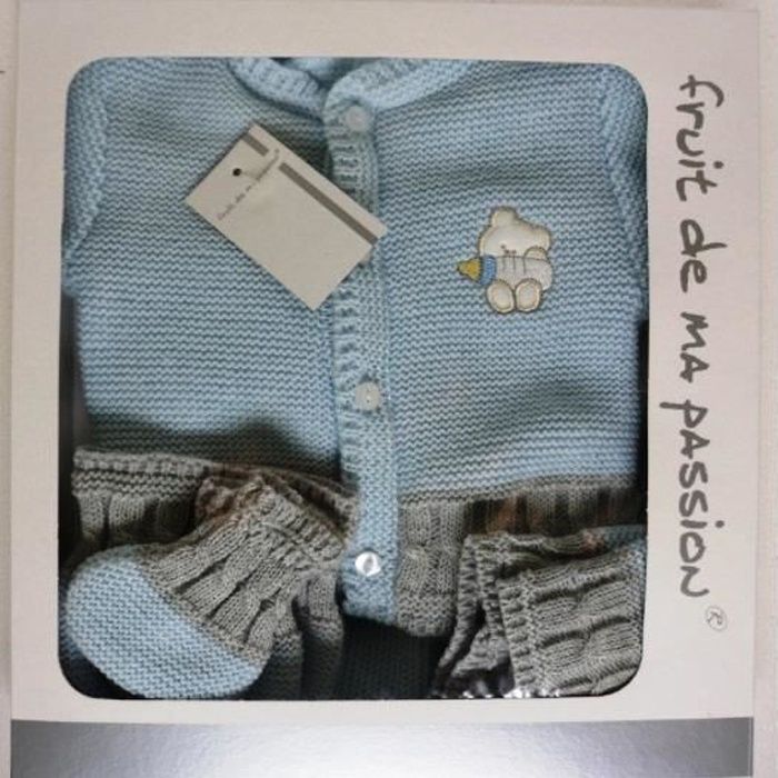 Coffret Naissance Bebe Idee Cadeau 4 Pieces Brassiere Laine Nissanou Bleu Avec Couleur Gris Au Bord Et Un Petit Nounours Bibron Achat Vente Coffret Cadeau Textile Cdiscount