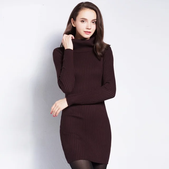 Epais Chaud Robes Pull Pour L Hiver Femmes Sexy Col Haut Moulante Marque Decontracte Pleine Manches Couleur Unie Mini Robe Tricotee Aliexpress