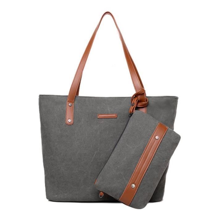 Sac A Bandouliere En Toile Portable Large Pour Les Femmes Avec Petit Sac A Main Gris Achat Vente Sac A Bandouliere En Toile Cdiscount