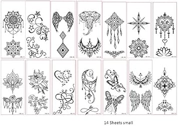 Tatouages Bijoux Lignes Tatouages Lot De 14 Noir Tatouage Ailes Mandala Elephant Et Plus Amazon Fr Beaute Et Parfum
