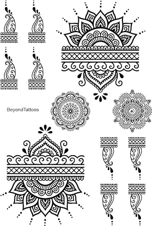 Konsait 12 Feuilles Tatouages Ephemeres Femmes Mandala Tatouages Temporaires Impermeable Tattoo Fleur Mehndi Ephemere Bras Poignet Body Pour Femme Noir Amazon Fr Beaute Et Parfum