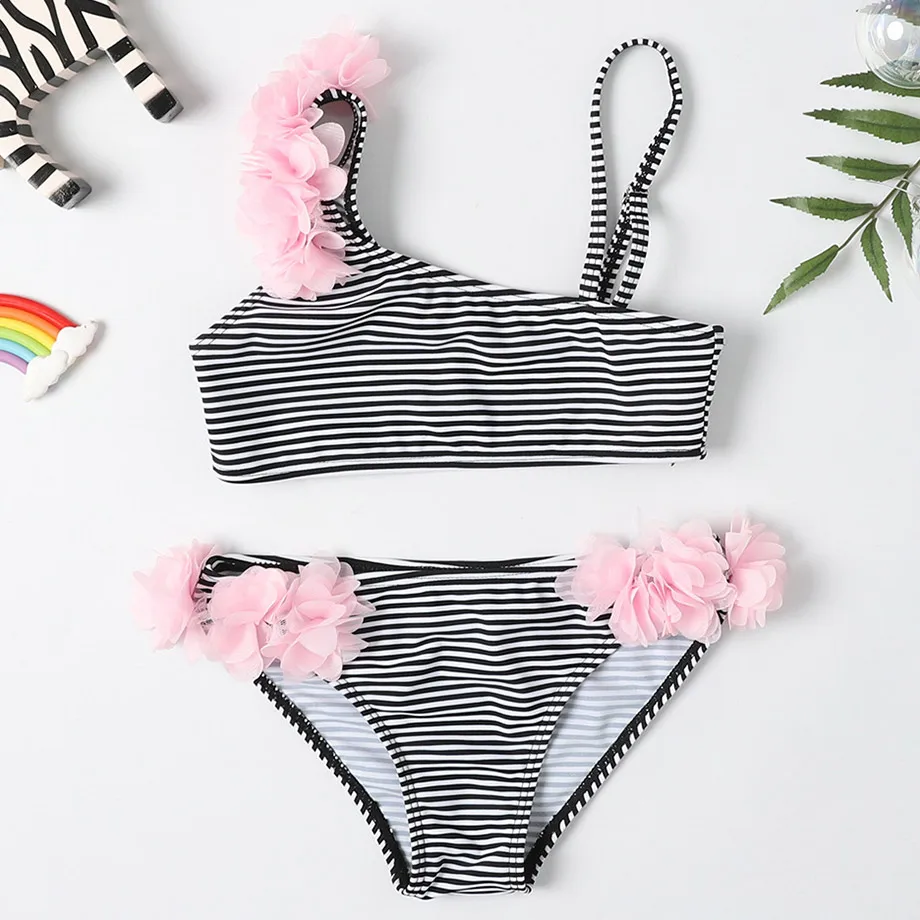 Maillot De Bain Pour Petite Fille De 2 8 Ans Ensemble Deux Pieces A Rayures Avec Fleurs Costume De Bain Pour Petite Fille Maillots De Bain Pour Enfants Aliexpress
