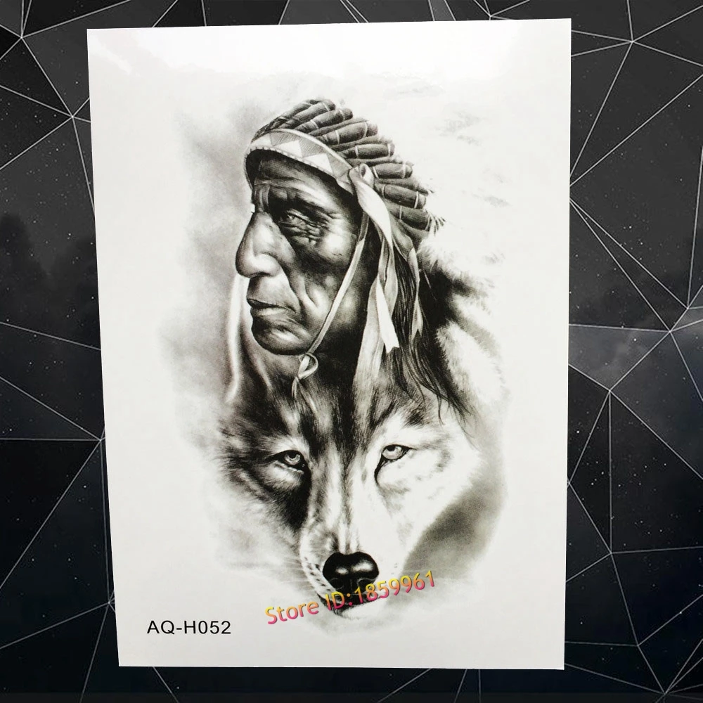 Autocollant De Tatouage Temporaire Homme Loup Femme Nouveau Design 3d Guerrier Indien Manche De Bras Faux Flash Impermeable Aliexpress