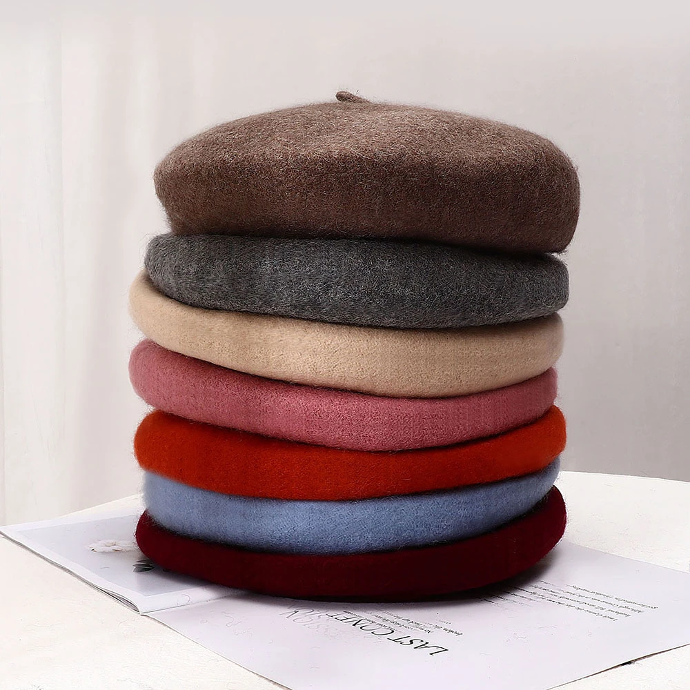 New Winter Warm Black Pink Faux Wool Beret Hat Bonnet Chapeau Femme Flat French Baret Hats Caps For Women Boinas Para Mujer Women S Berets Aliexpress