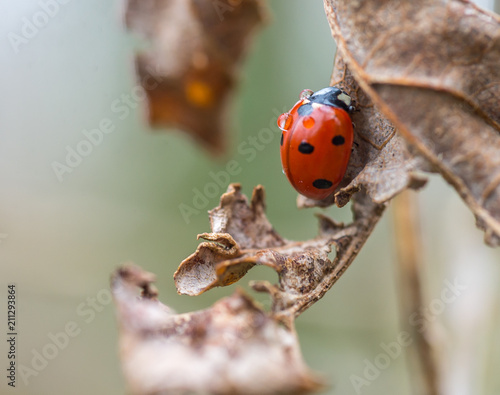 Insecte Coccinelle Rouge Et Noir Avec Une Goutte Sur Le Dos Sur Une Feuille Morte Buy This Stock Photo And Explore Similar Images At Adobe Stock Adobe Stock