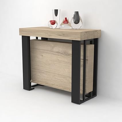 Ve Ca Table Console Extensible Urano Avec Porte Rallonges Bois Lamine Et Pieds En Acier Noir Mat Extensible De 40 A 300 Cm En 10 Couleurs Bois Chene Sherwood Amazon Fr Cuisine Maison