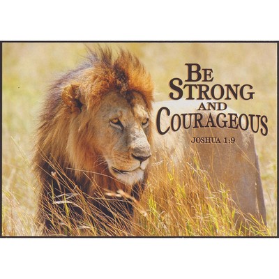 Measuring 195 inches by 108 inches, the zinc dog tag features the raised image of a lion beneath the word courage on the front and the full text of Joshua 19, Be strong and courageous, Do not be afraid;. The compelling cover of the Be Strong And Courageous Classic LuxLeather Journal, features the striking features of a lion's face and the powerful command from Joshua 19, Have I not commanded you?. Do not be discouraged, for the Lord your God will be with you wherever you go Cast in 100% leadfree pewter;.