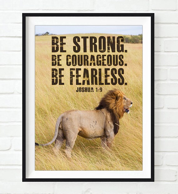 Lion Artwork Bible Verse Courage Scripture Joshua 1 9 From Etsy